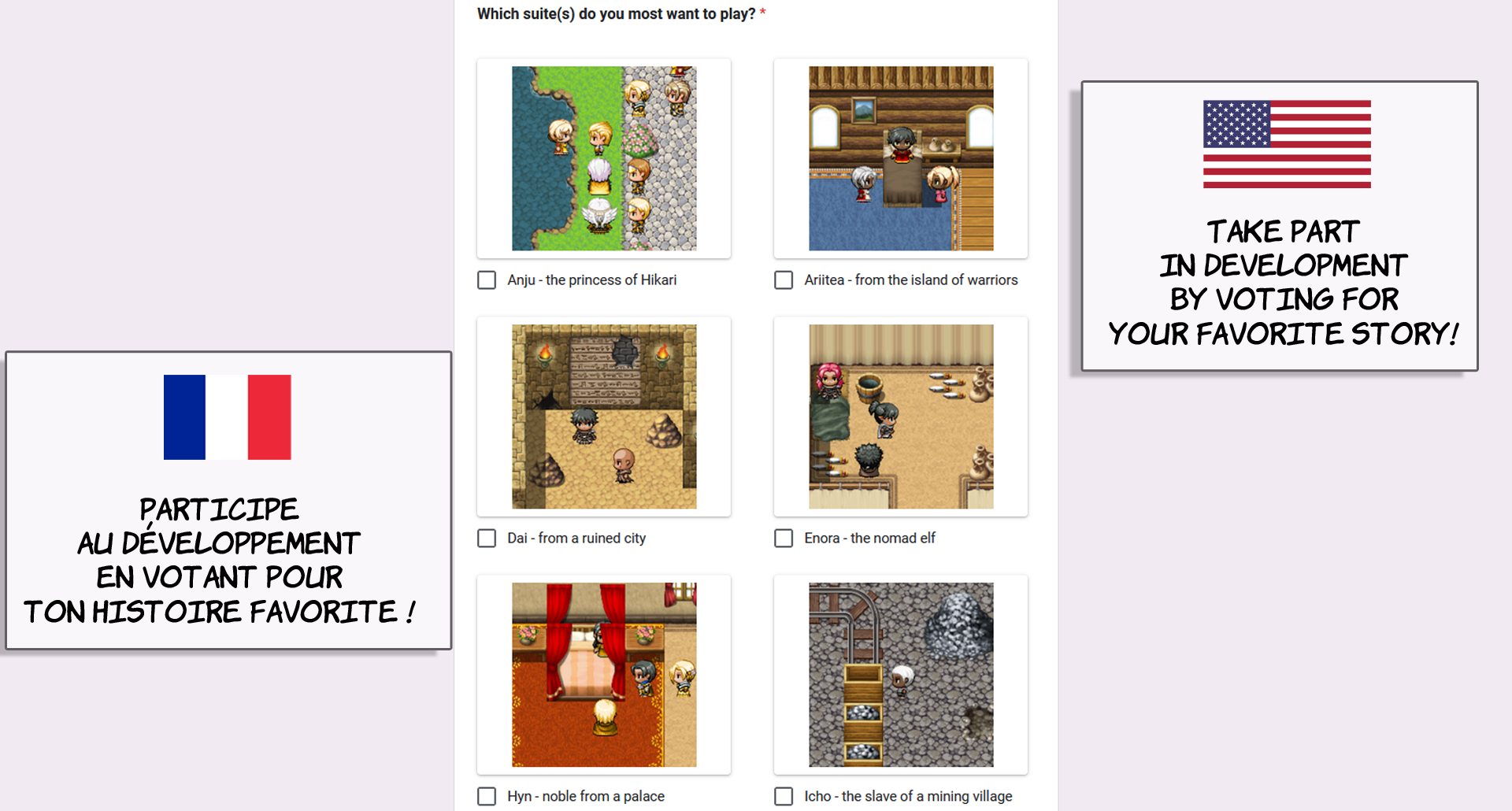 Je suis contente de lire que tu as envie de connaître les suites. Peux-tu me dire quelles histoires t’ont le plus donné cette envie ? Maintenant que les bases du jeu sont terminées, mon objectif pour 2024 est de faire la suite des histoires et je serai ravie de savoir la ou lesquelles t’intéressent le plus.